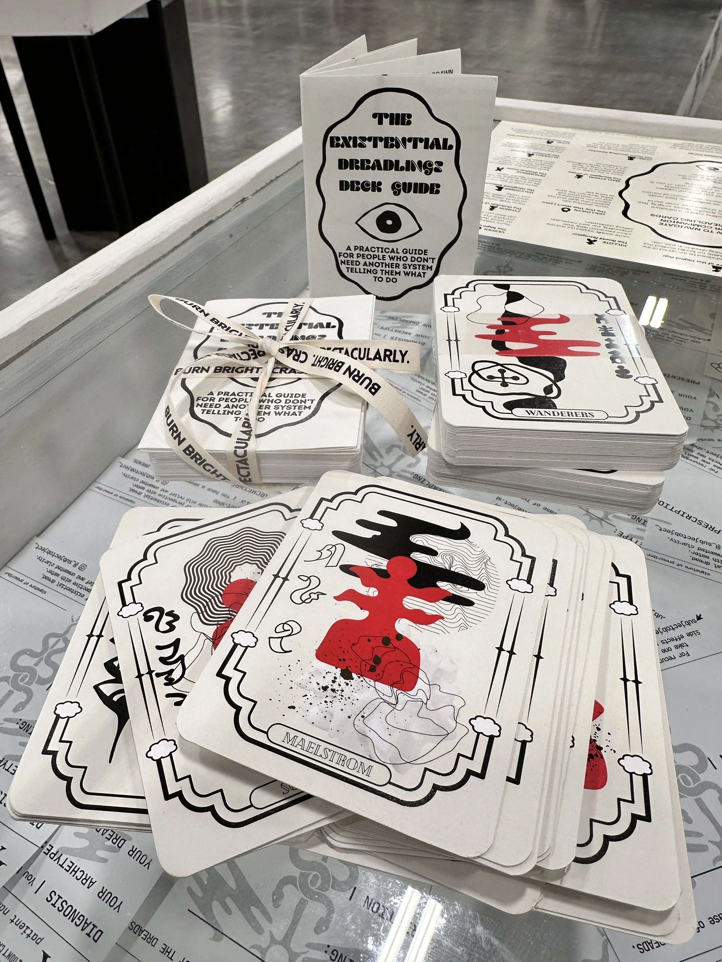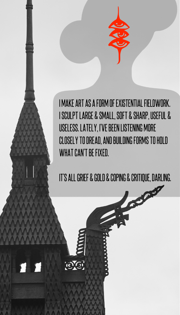 The Existential Dreadlings is a long-form project for people living through the current era without pretending it’s normal. Sculptural figures, portable publications, and participatory tools act as deadpan witnesses to time collapse, emotional numbing, and all the ways we keep performing “fine.”